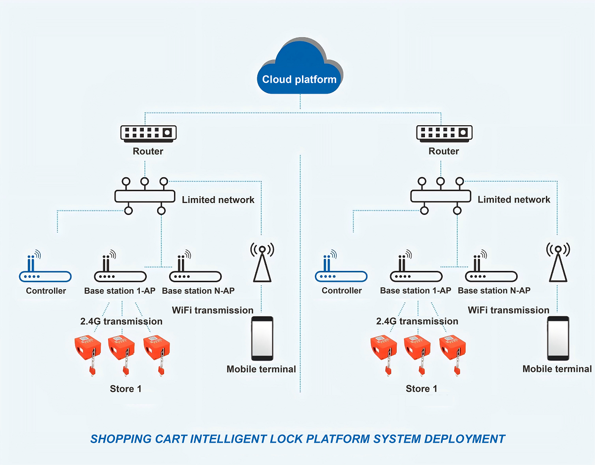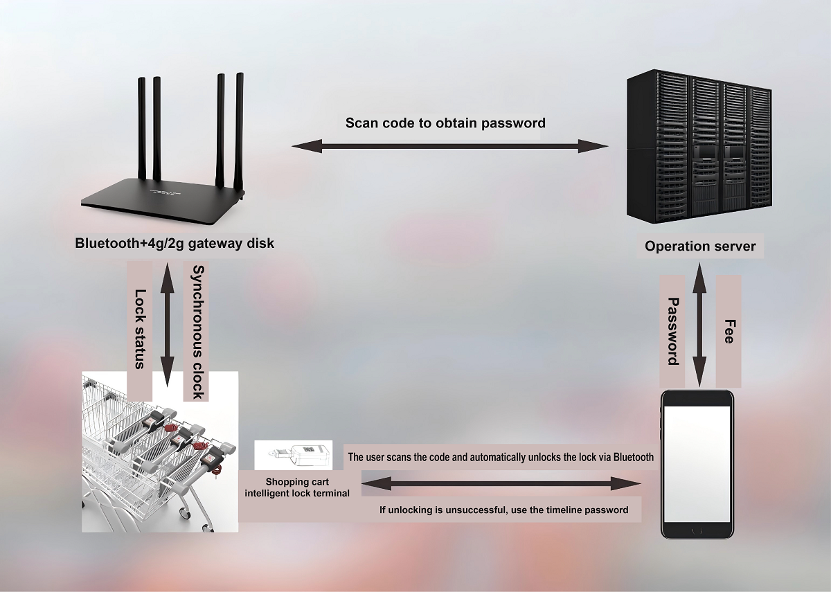 The smart shopping cart lock using Bluetooth technology can be fixed on most shopping carts on the market. By connecting the shopping cart to the Internet of Things through a gateway and Bluetooth, intelligent management can be achieved. In addition to improving the management efficiency of supermarket shopping carts and enhancing customers' unlocking experience, it can also track and locate customers' shopping trajectories, analyze shopping habits, attract low-cost traffic, increase customer stickiness and shopping success rate.