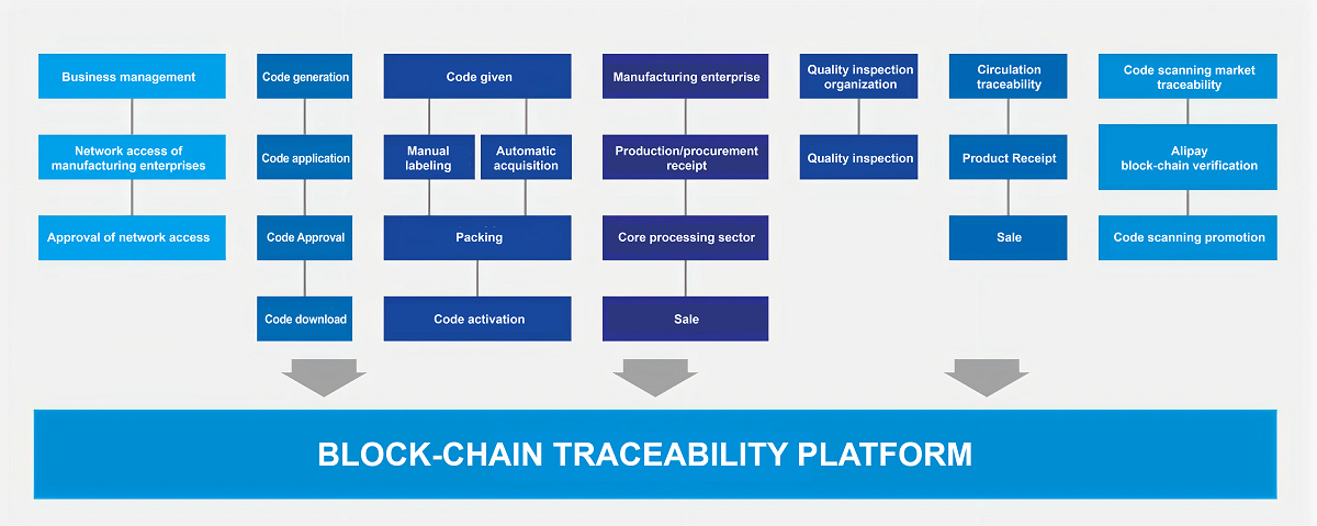 Blockchain enables multiple parties to jointly record traceability information, allowing consumers to query and verify authenticity, and the chain can be traced.