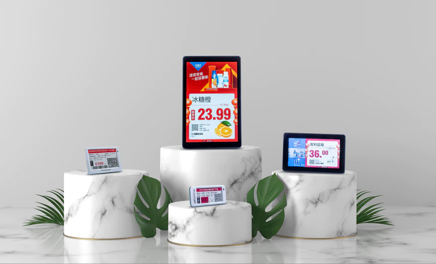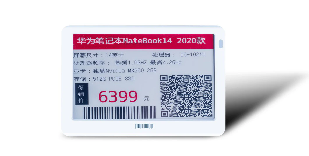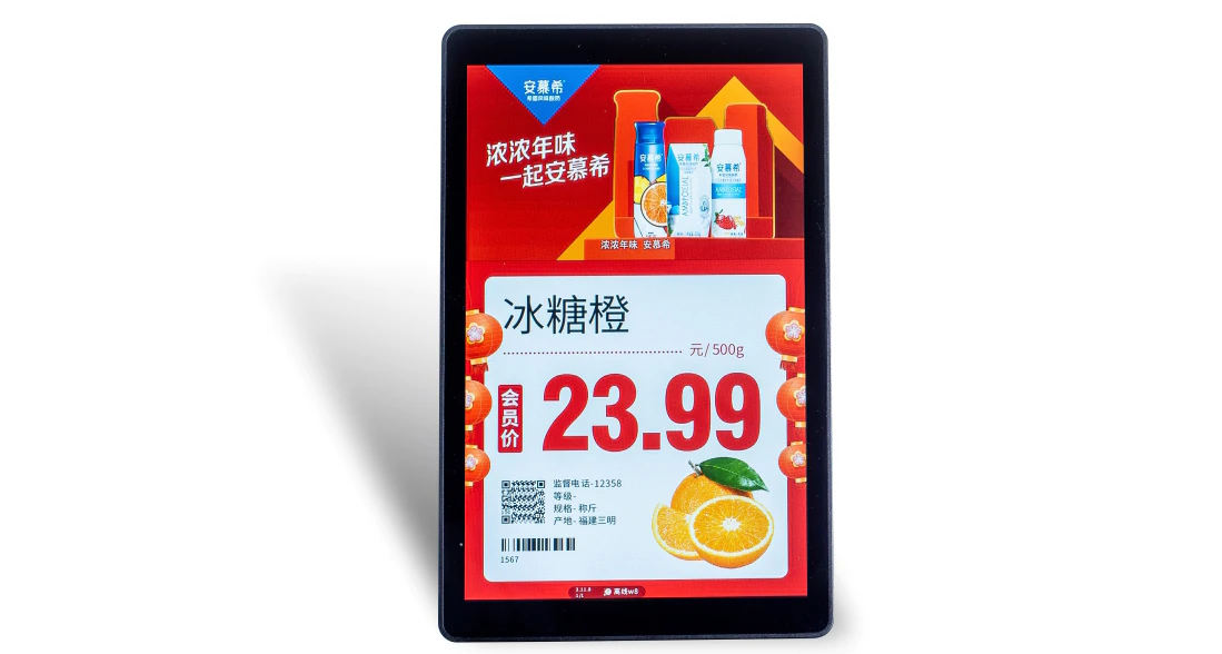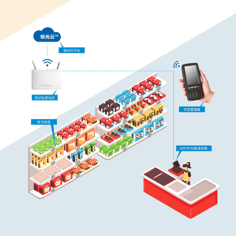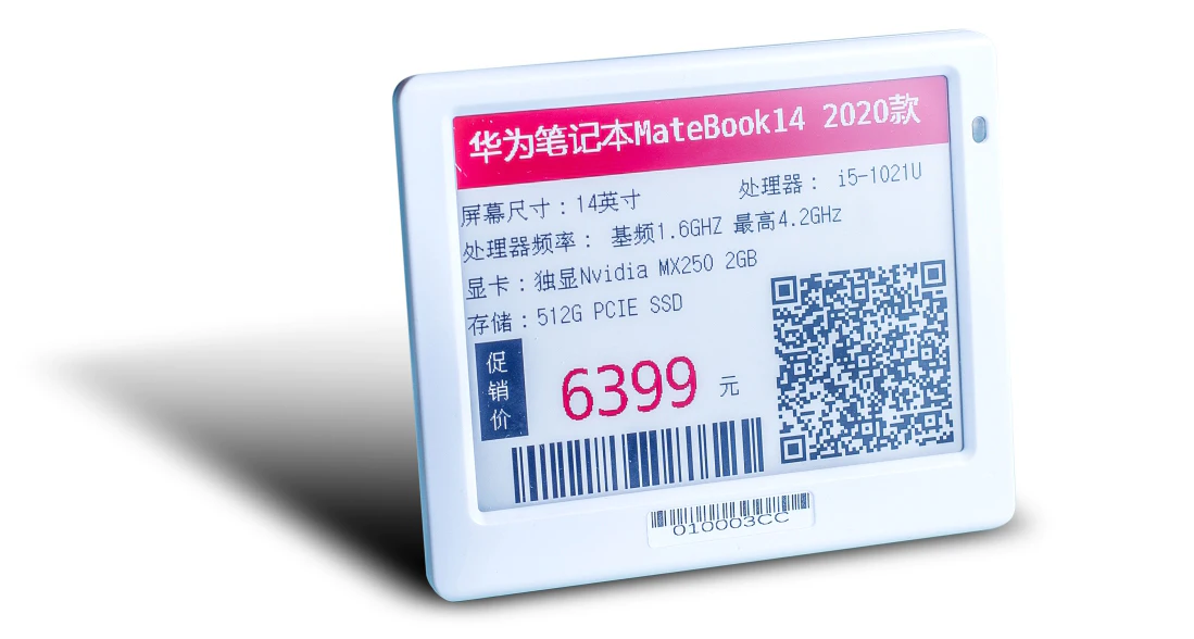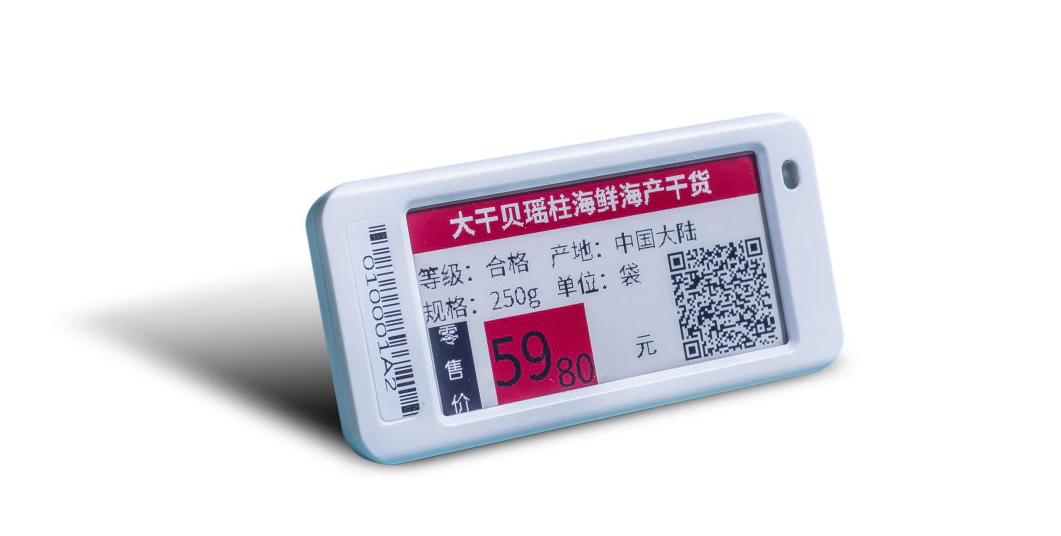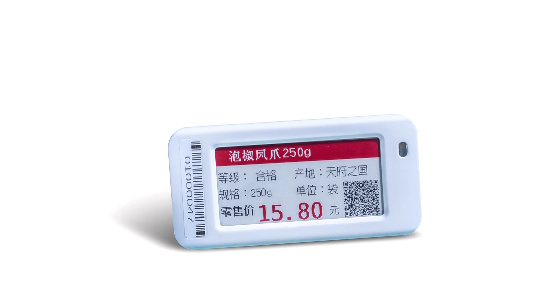 电子货架标签(ESL),是一种放置在货架上、可替代传统纸质价格标签的电子显示装置,能够向顾客展示该款产品的名称、产地、价格等表现形式包括文字和二维码等)每一个电子价签(ESL)通过无线网络与商场计算数据库相连,并将最新的商品价格通过电子价签(ESL)上的屏显示出来。电子价签(ESL)事实上成功地将货架纳入了计算机程序,摆脱了手动更换价格标签的状况,实现了线上与线下之间的价格一致性。