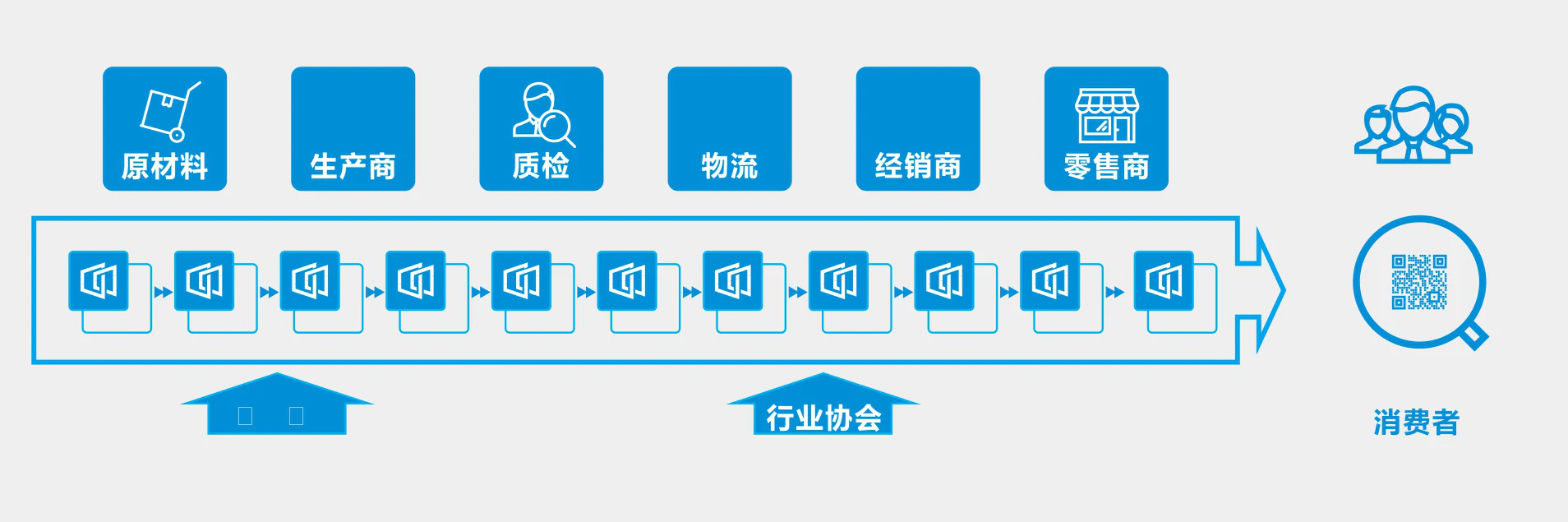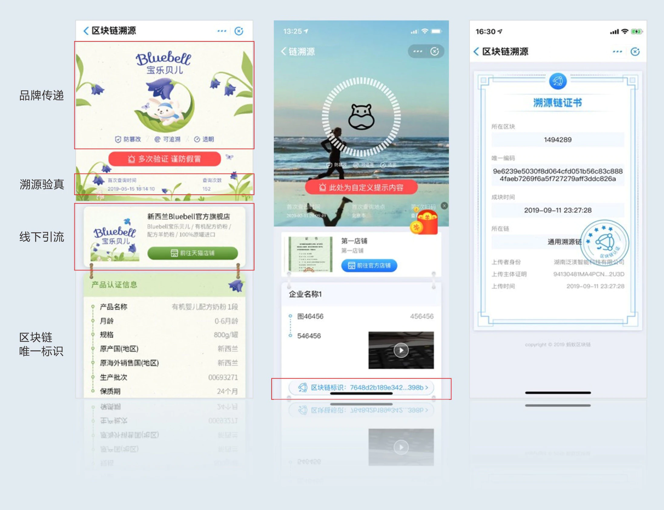 区块链实现多方共同记录溯源信息,消费者可查询验真,链路可追溯。