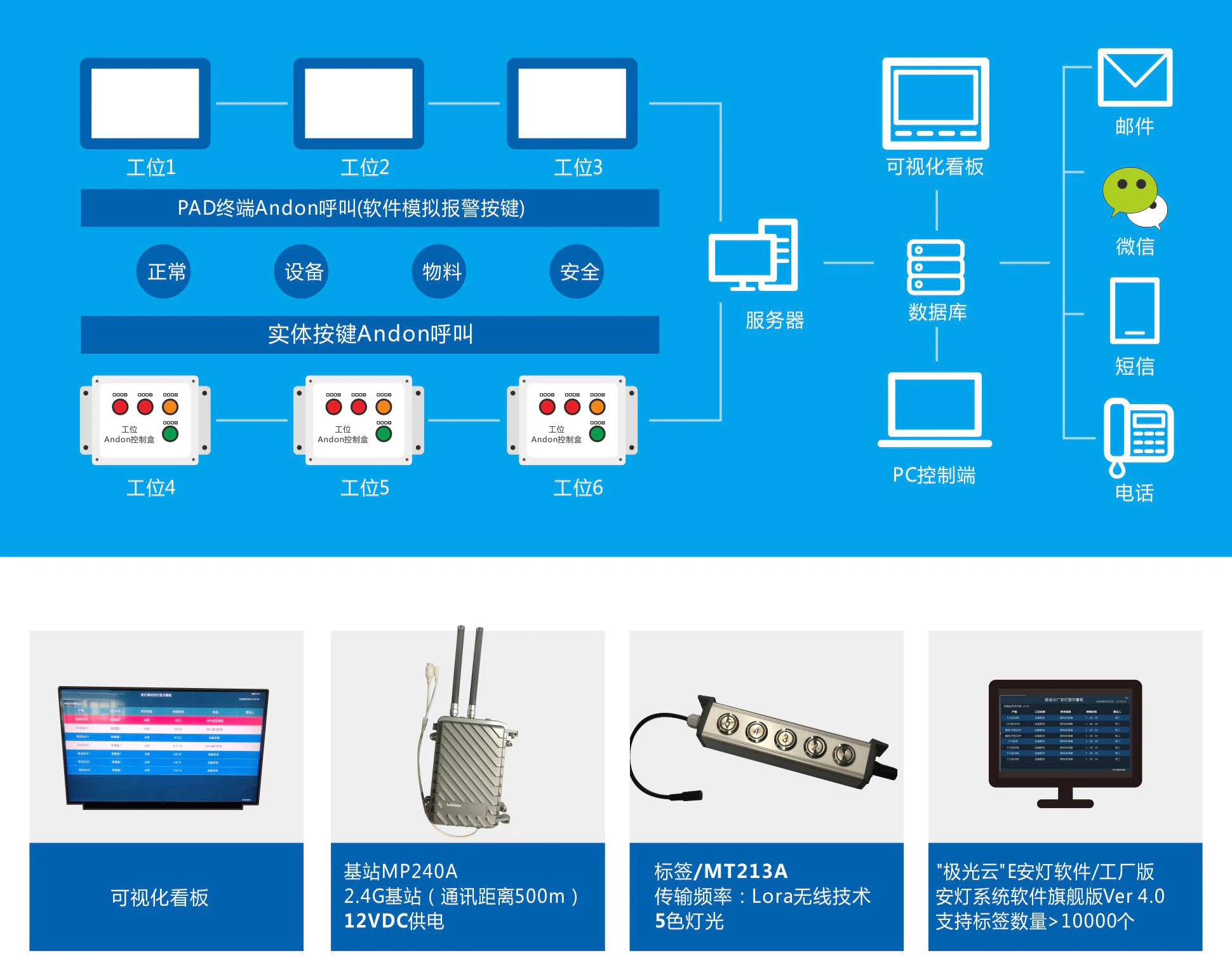 系统每个设备或工作站都装配有呼叫灯,如果生产过程中发现油管物料、质量、设备、安全等异常呼叫,通过WIFI上传给系统,系统回复并点亮呼叫指示灯,相关人员通过上传的信息与指示灯及时定位故障工位,使得生产过程中的问题得到及时处理。